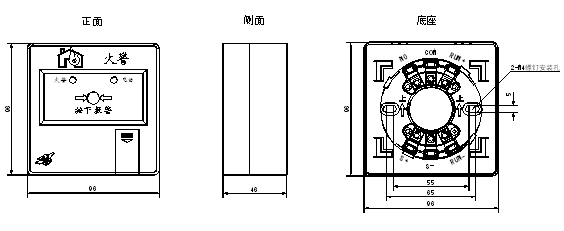 三、J-SAP-EI6021型手動(dòng)火災(zāi)報(bào)警按鈕外形及安裝尺寸